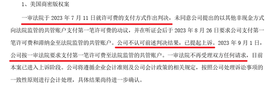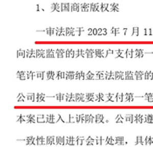 也就是说,至少在2023年10月,海能达和摩托罗拉之间在有关美国一审法院的判决专利费问题上,虽然有不同意见,表示已提出上诉,但都已按要求支付了第一笔许可费至法院监管的账户。