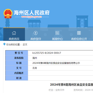 2024年第6期海州区食品安全监督抽检信息公示