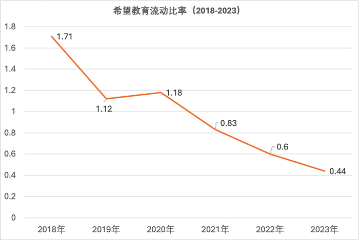 根据财报,从2019年到2023年,希望教育的流动负债从31.4亿元,攀升至94.1亿元。流动比率(流动资产除以流动负债)则从2018年的1.71降至2022年的0.60和2023年的0.44。