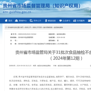 贵州省市场监管局关于31批次食品抽检不合格情况的通告(2024年第12期)