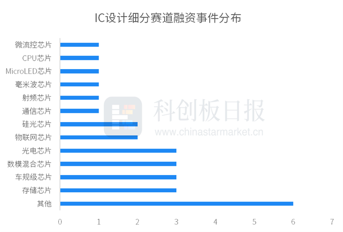按照芯片类型分类,3月受投资人追捧的芯片设计细分赛道,包括存储芯片、车规级芯片、数模混合芯片、光电芯片等。