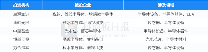 本月的投资方包括晨晖资本、中芯聚源、源码资本、力合资本、临芯投资、中启资本、卓源亚洲、小苗朗程、红杉中国、九合创投、无限基金SEE Fund、基石资本等知名投资机构;