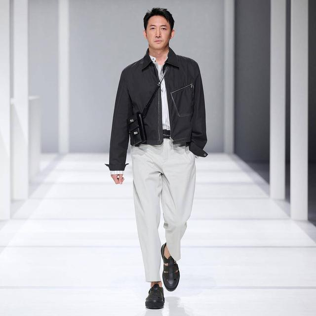 其实,爱马仕在多年前就开始了这样的传统,邀请各行业佼佼者登台走秀。演员张丰毅、段奕宏就分别在2011年和2018年,在国内的爱马仕男装秀上贡献过自己的模特步。而这一次T台上的焦点——王阳,黑色口袋夹克配白色裤子,背上斜挎包,穿上黑皮鞋,虽手插口袋肩膀一高一低,但整体搭配和表现足够吸睛。不过,他整场表情严肃,看起来向当“拽”,难怪有不少网友评论说,在《追风者》中王阳的嘴巴就一直是“歪的”,到了秀场上,“更歪了!”。