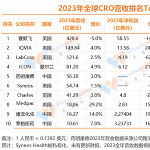 在2023年TOP10榜单中,Medpace是*一个在收入端保持了双位数高速增长的海外CXO,展现出了显著的业绩韧性和成长力。