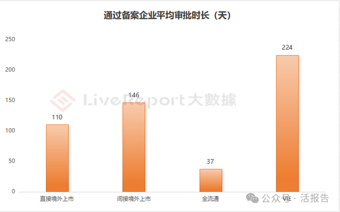 申请间接境外上市企业的平均审批时长约为146天(约五个月),普遍高于申请直接境外上市企业的平均时长(110天)。