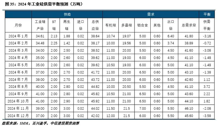 总结:工业硅期货有触底迹象,现货市场继续下行进行期现回归,尽管市场仍然略显悲观,但悲观情绪已大部分释放。从基本面来看,硅企亏损压力持续加大,硅厂停产数量持续增加,供应的减少有望环节过剩担忧;下游对工业硅消耗暂时平稳,但多晶硅、有机硅下游均面临需求不佳的问题,给后市开工带来下调的预期,采购需求持续疲软。总体来看,工业硅行情低迷正在压制企业开工意愿,供应过剩的压力有所缓解,尽管需求端尚未见到利多因素出现,但工业硅价格已处底部区域,难再进一步下行。操作上,暂观望,SI2405合约参考区间11800-12500元/吨。
