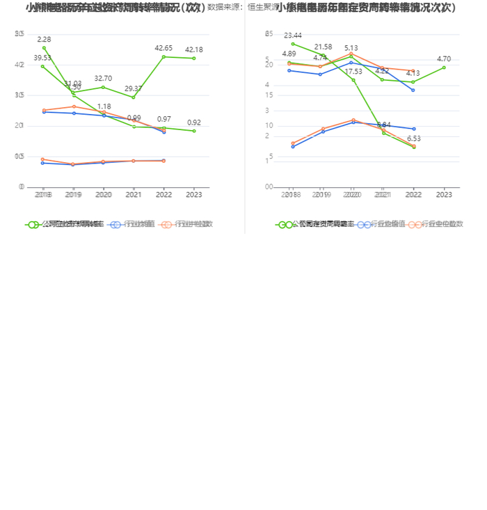营运能力方面,2023年,公司公司总资产周转率为0.92次,上年同期为0.97次(2022年行业平均值为0.90次,公司位居同行业6/12);公司应收账款周转率、存货周转率分别为42.18次、4.70次。