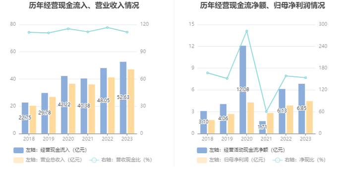 2023年,公司营业收入现金比为111.69%,净现比为153.76%。