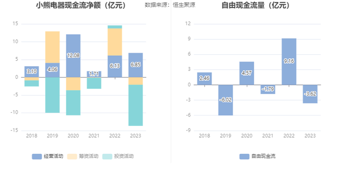 进一步统计发现,2023年公司自由现金流为-3.62亿元,上年同期为9.16亿元。