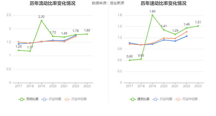 2023年,公司流动比率为1.80,速动比率为1.51。