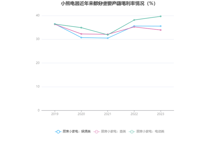 分产品看,厨房小家电:锅煲类、厨房小家电:壶类、厨房小家电:电动类2023年毛利率分别为35.58%、33.94%、39.71%。