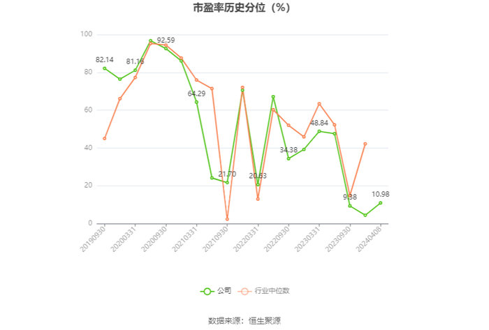 市盈率为负时,不显示当期分位数,会导致折线图中断。