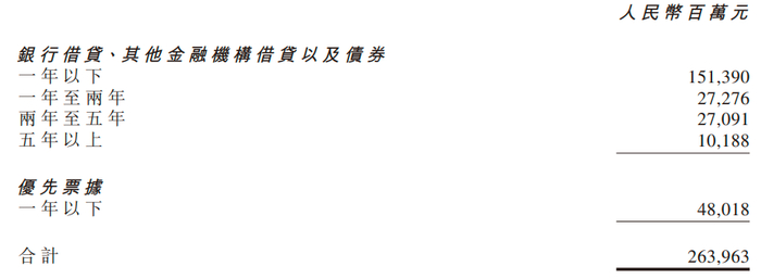 截至2023年末,其一年以下的优先票据仍有480.18亿元,一年以下的银行借贷、其他金融机构借贷及债券有1513.9亿元。