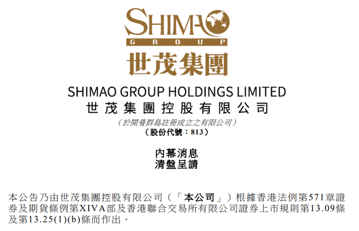 今早(4月8日),世茂集团发布内幕消息,中国建设银行(亚洲)股份有限公司,在4月5日向我国香港特别行政区高等法院提出了对世茂集团的清盘呈请,涉及世茂集团的财务义务金额约为15.793亿港元。