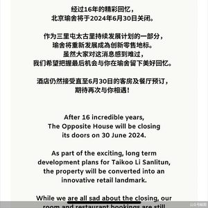 作为三里屯时尚潮流地标之一的北京瑜舍酒店即将闭店转型。4月8日,据“北京瑜舍”公众号消息,北京瑜舍酒店将于6月30日关闭,作为三里屯太古里持续发展计划的一部分,瑜舍酒店将重新发展成为创新零售地标。目前,酒店仍然接受客房及餐厅预订,直至6月30日。