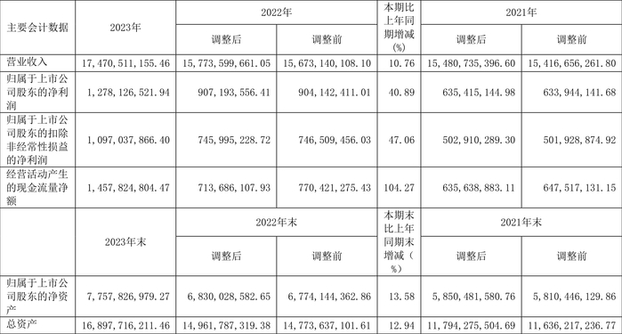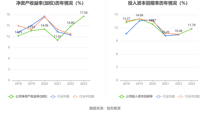 数据显示,2023年公司加权平均净资产收益率为17.56%,较上年同期增长2.76个百分点;公司2023年投入资本回报率为11.79%,较上年同期增长1.31个百分点。