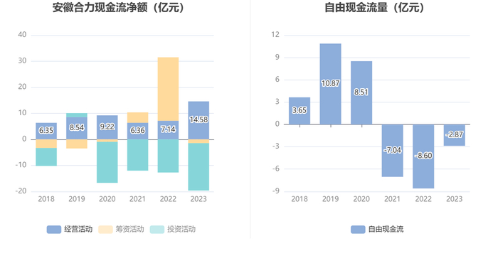 进一步统计发现,2023年公司自由现金流为-2.87亿元,上年同期为-8.60亿元。