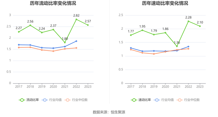 2023年,公司流动比率为2.57,速动比率为2.10。