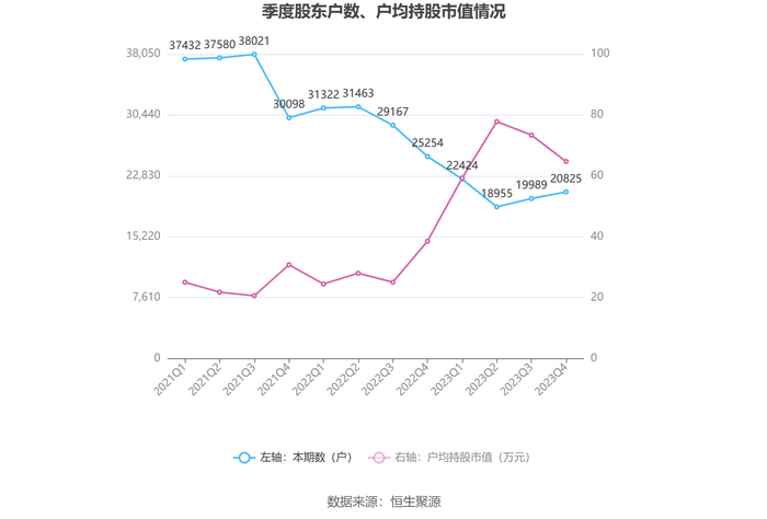筹码集中度方面,截至2023年年末,公司股东总户数为2.08万户,较三季度末增长了836户,增幅4.18%;户均持股市值由三季度末的73.39万元下降至64.73万元,降幅为11.80%。
