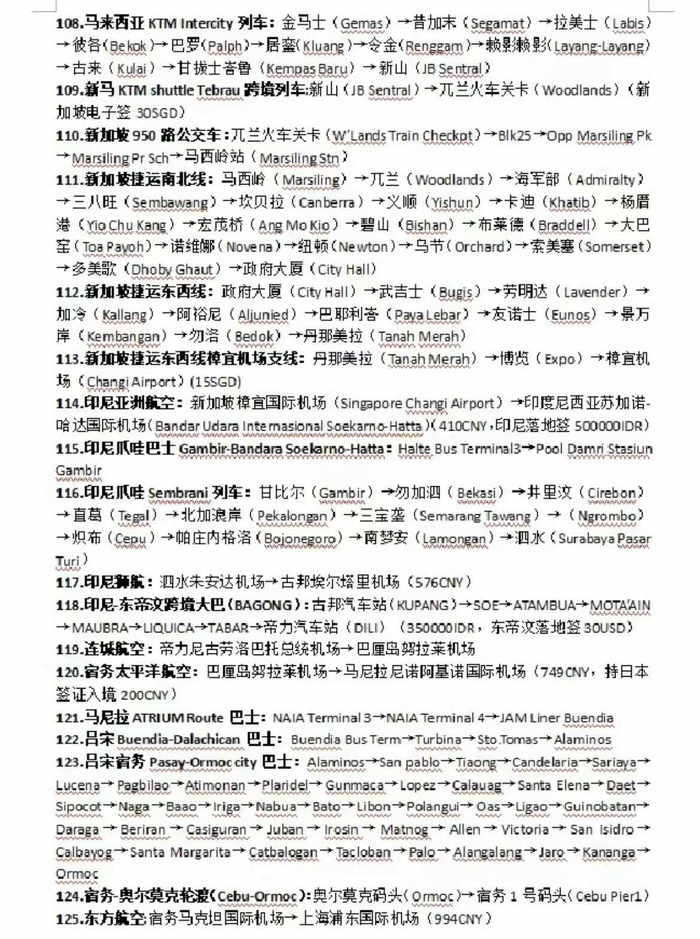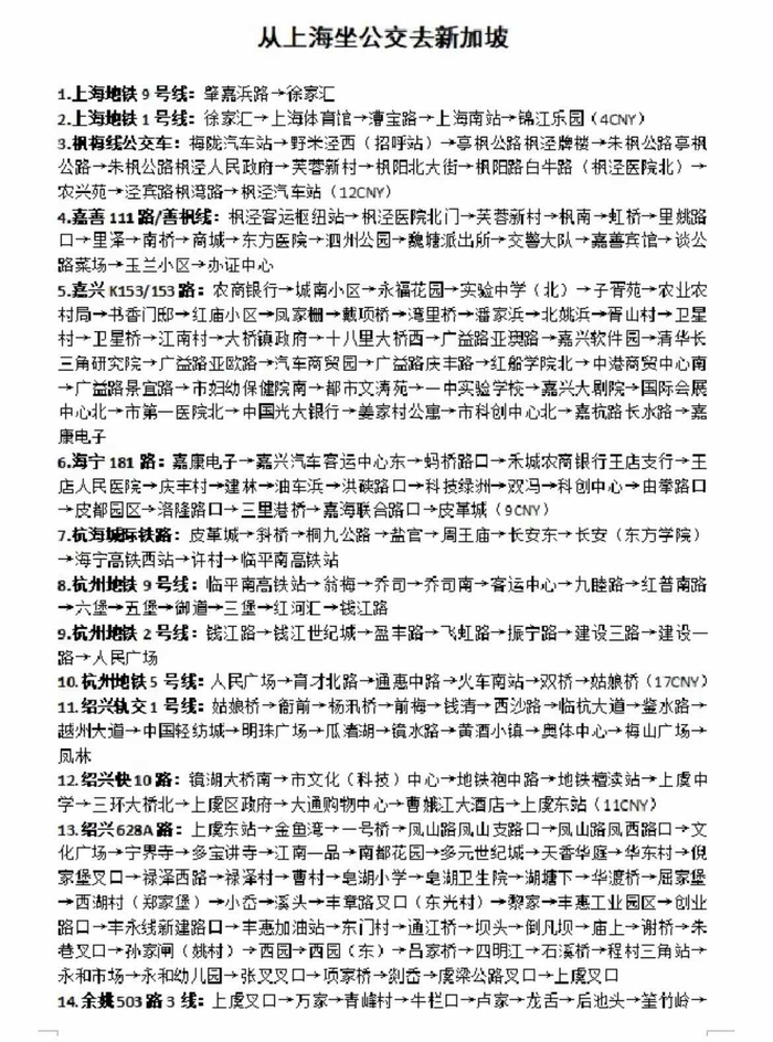 从上海到新加坡,江夏全程的交通工具有公交车、大巴、火车、轻轨、地铁、飞机等,总体来说,乘坐最多的交通工具还是公交车。他要从国内乘公交到云南昆明,再一路换乘火车和轻轨到达新加坡,之后搭飞机、公交和火车到印度尼西亚和东帝汶,再到菲律宾宿务,最后返回上海。