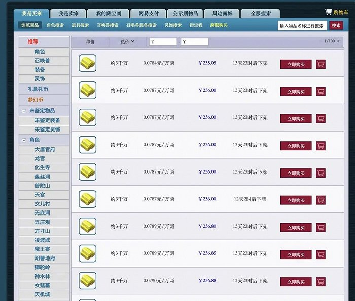 《梦幻西游》中的虚拟币“梦幻币”可以直接用现金购买交易,而平台更是靠着绝对垄断权,可以无限地进行货币与道具的发放,加上各种角色、宝宝、材料、装备等交易中抽得的手续费,“藏宝阁”可以说是制作组旗下当之无愧的现金牛。