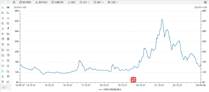 国金证券认为,由于历经2021-2022年高价,海外矿供应已面临瓶颈,考虑目前价格已跌入较低位置、进口矿经济性显著降低,我们判断2024年稀土进口很难维持2023年高基数,2024年1-2月份稀土进口量如期同比显著下滑;持续低价亦严重压缩稀土再生产业利润,后续扩张受限。财政部、工信部发布《关于开展制造业新型技术改造城市试点工作的通知》对打造智能工厂和老旧设备更新改造提出资金支持;考虑政策配套持续落地,稀土磁材或有望持续受益于制造升级和更新改造。中长期来看,随着海外矿供应面临瓶颈、国内配额增速放缓,稀土价格中枢有望逐步上行。