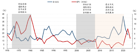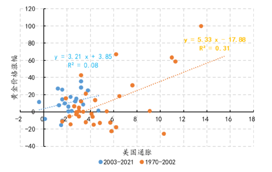 图 11:通胀作为主导变量时期,通胀与黄金价格相关性更强