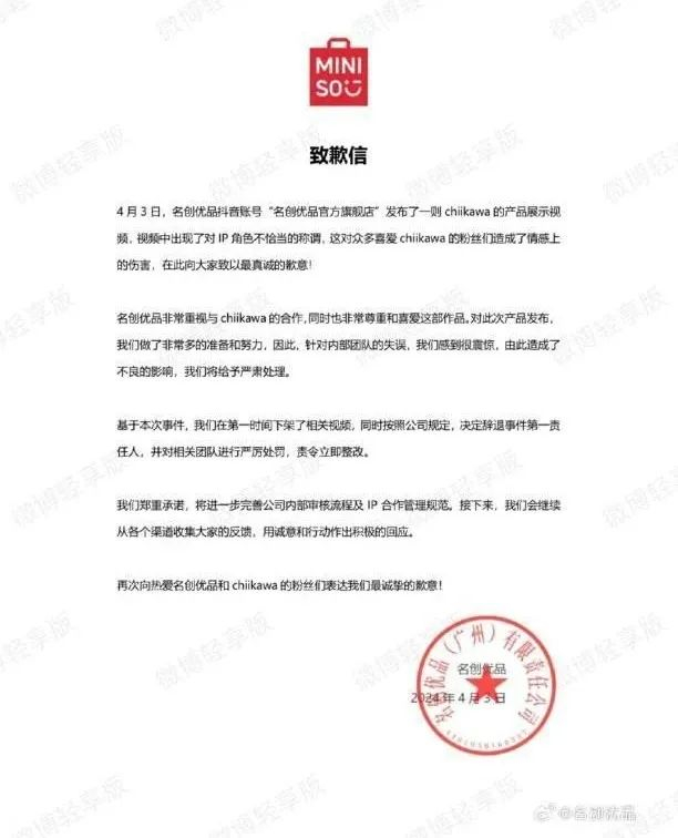 其实无须网友提醒,名创优品自己也意识到,这泼天的富贵恐怕要接不住了。于是,名创优品的官方致歉信随即发出。