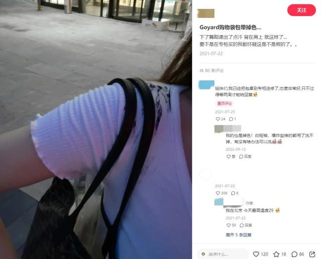 记者搜索了社交平台,不少网友说,背这款包也遇到过掉色的情况。