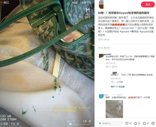 4月7日,演员@孙坚 发视频吐槽奢侈品Goyard(高雅德)包包质量堪忧:“我真的服了”。他表示,包包存在掉漆现象,已经两件衣服被染上。不仅如此,肩带部分甚至还掉毛。