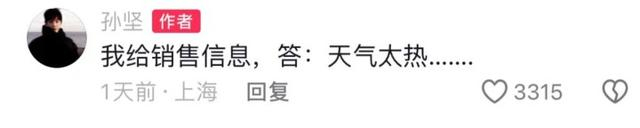 随后,孙坚又在评论区回复:询问了销售,得到的答复是天气太热。