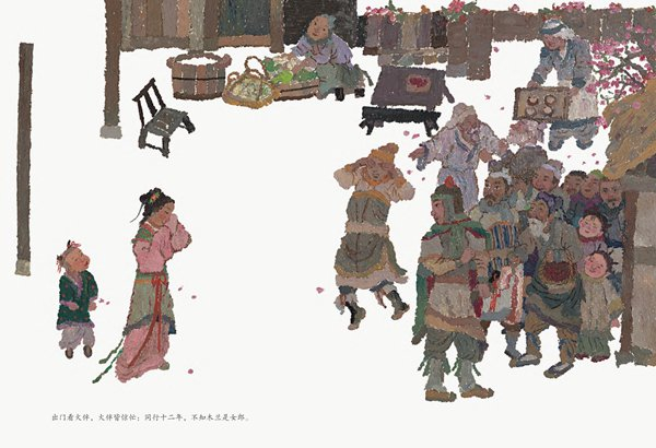 呈现古诗《木兰辞》的绘本《花木兰》。