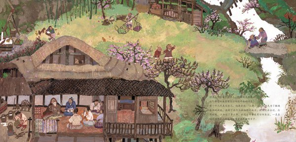 脱胎于陶渊明《桃花源记》的绘本《桃花源的故事》,呈现了一个梦想与现实交织的奇遇故事,再现失落的中国田园之美。