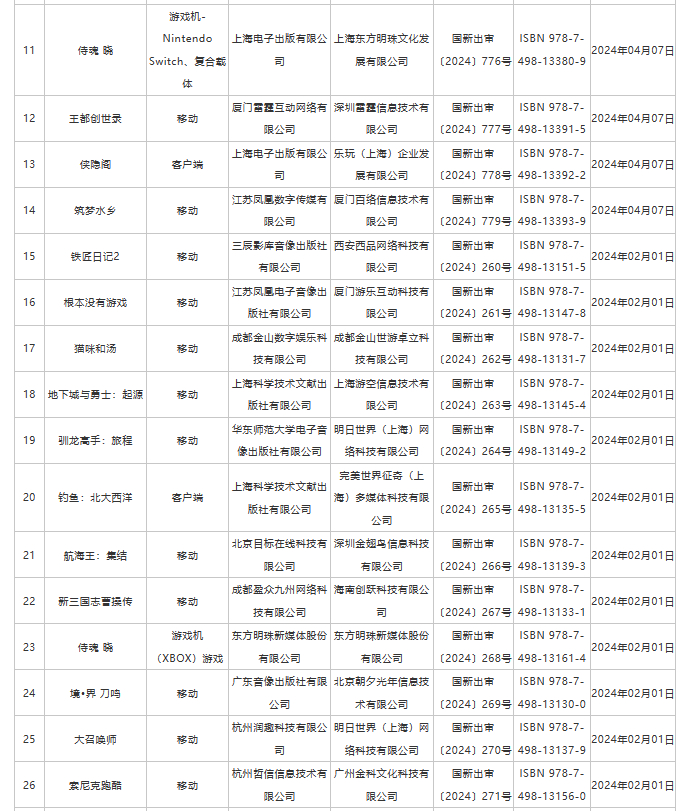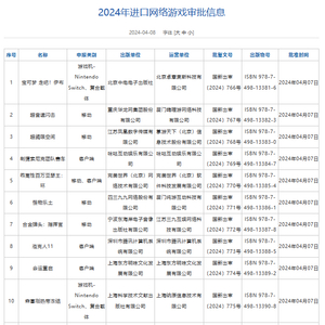 4月8日晚间,国家新闻出版署对外公布了2024年进口网络游戏审批信息,共有46款产品在列。