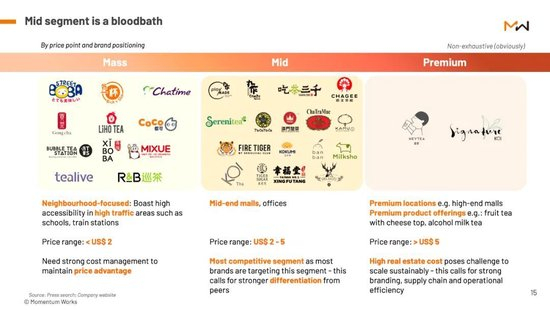 如果售价按照“高于5美元、2-5美元、低于2美元”划成三档,东南亚市场的茶饮品牌可分为 A、B、C 三类赛道,不同价位的奶茶品牌拓店速度差异明显。