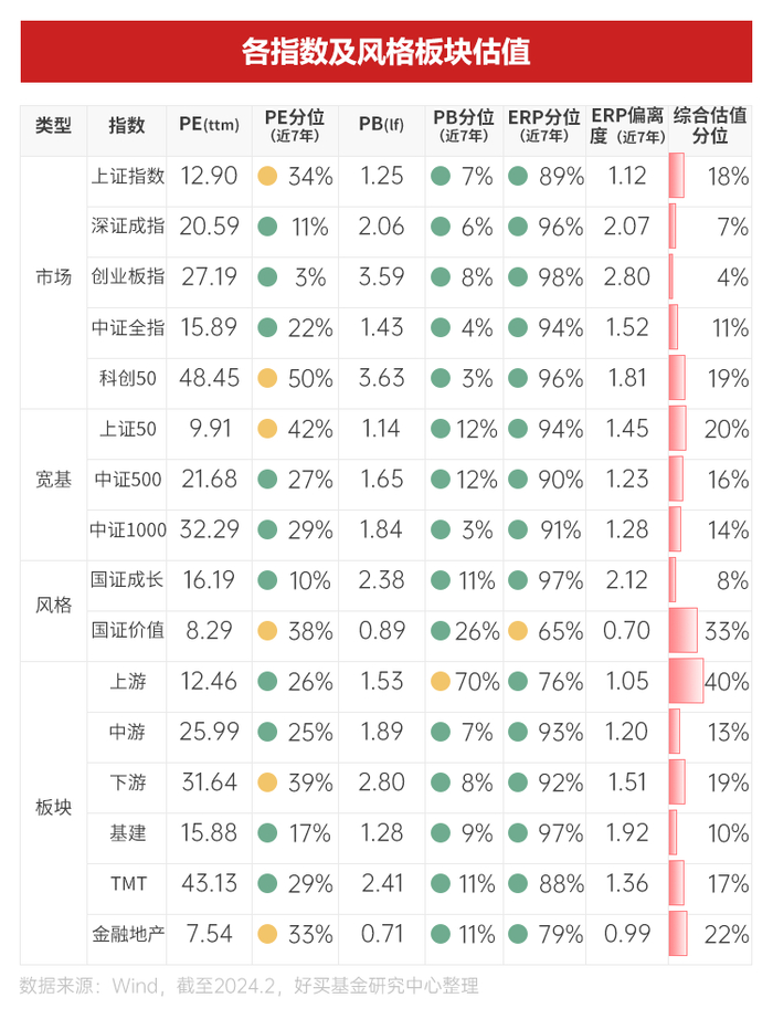 从估值角度看,当前市场估值整体处于偏低水平,其中创业板指估值仅处于近七年3%的分位位置。此外,多数宽基指数也位于历史较低水平,A股整体估值优势明显。