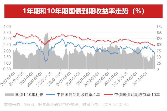 国债方面,近期长端收益率已达历史低位,短端亦快速下行,期限利差收窄。城投化债利好逐步落地,加上2023年末至2024年年初市场风险偏好下降,信用债收益率下行明显,信用利差收窄幅度较大,低等级、中长端表现尤甚。