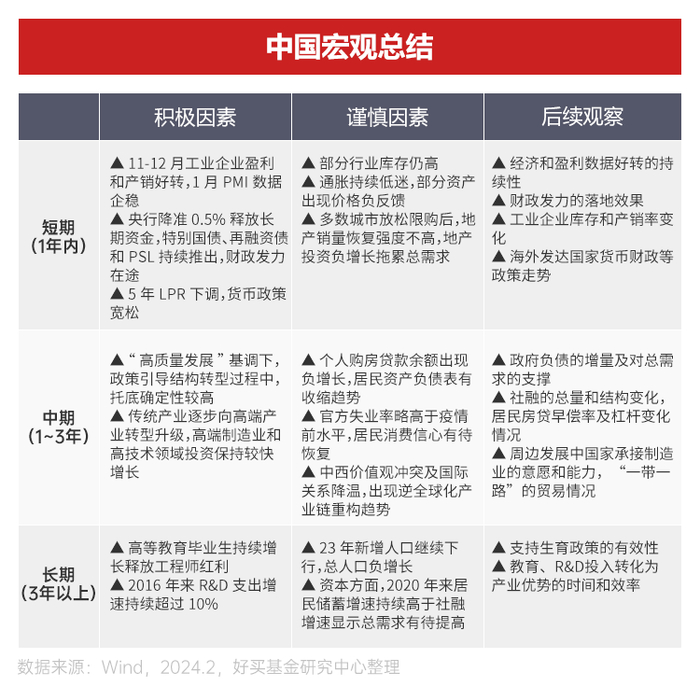 总体而言,当前经济基本面复苏动能较弱,地产数据尚未得到实质性改善。需求不足叠加通缩隐患,经济复苏动能仍需密切关注。此外,流动性整体充裕的背景下,结构增量仍是重点。后续,需要观察经济和盈利数据好转等积极因素的持续性。中长期而言,经济以“高质量发展”为基调,政策引导结构转型过程中,托底确定性较高。