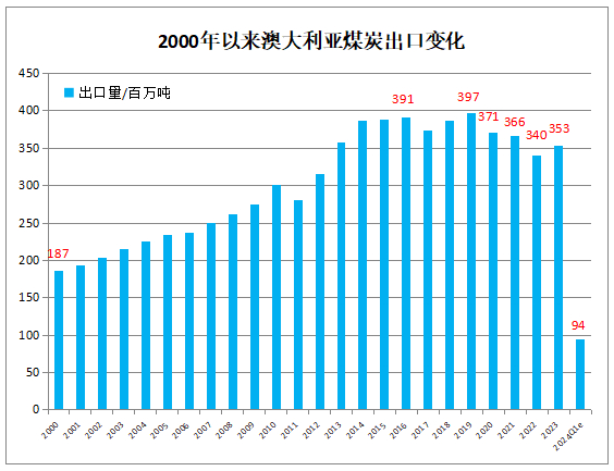 澳大利亚预计2024年1季度煤炭出口同比增长17.3% 环比下降0.7%