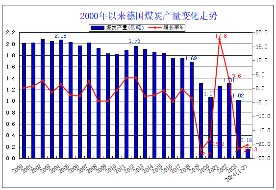 2024年1-2月德国煤炭产量同比下降20.3%