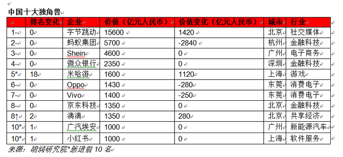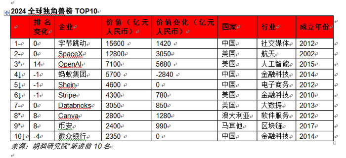 胡润发布2024全球独角兽榜:字节跳动位居榜首 OpenAI价值增长最快