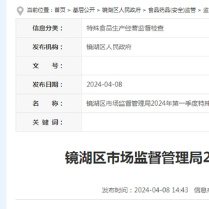 芜湖市镜湖区市场监督管理局2024年第一季度特殊食品安全监督检查结果