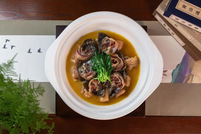 这道菜灵感来源于苏州唐家青盐甲鱼,选用3斤的汉寿甲鱼,搭配蹄髈炖煮5小时,肉质鲜香,汤汁浓郁,胶质封唇,是一道滋补养生的美食。