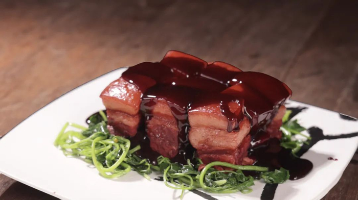 色泽樱红,光彩悦目,犹如樱桃新摘,诱人垂涎。皮如凝胶,膘如玉冻,瘦肉深红,层次分明,无愧于“时令春鲜”之名。