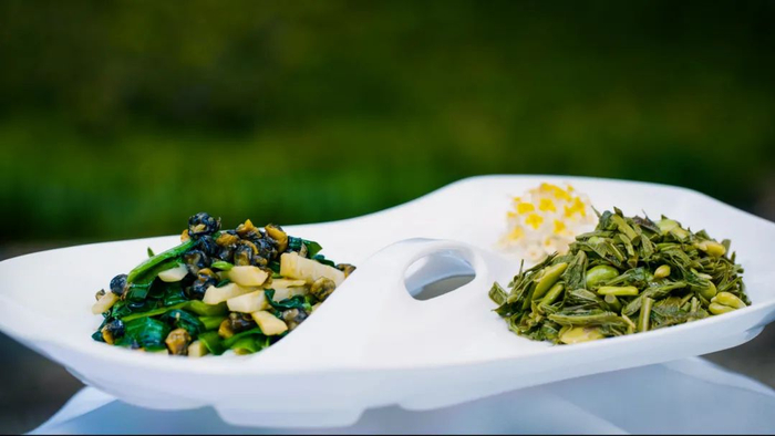 以浅油快火的方法烹制,豆瓣新绿、椿香如茶、螺头弹齿、笋尖脆爽。一口色香两相宜,品尝春天的味道。