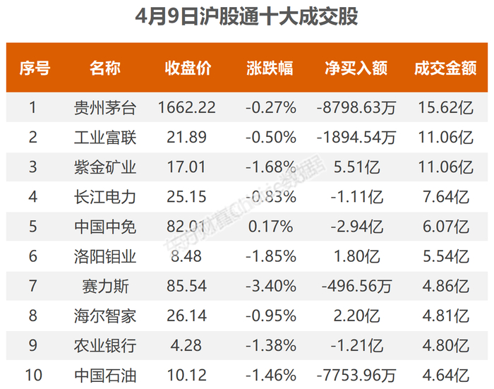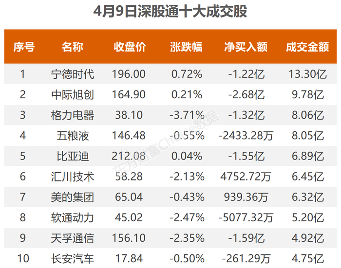 4月9日北向资金最新动向(附十大成交股)