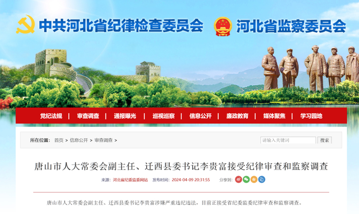 记者还了解到,工作组对马树山反映的10个具体问题进行了调查核实,尚未发现存在其反映的问题。马树山作为退休干部,违反组织程序以匿名信方式反映问题。其所在党组织决定,对马树山的错误行为进行批评教育。同时,调查中发现唐山市人大常委会副主任、迁西县委书记李贵富,其他涉嫌严重违纪违法问题。河北省纪委监委已对其立案审查调查并采取留置措施。
