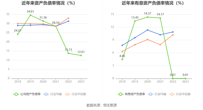 在偿债能力方面,公司2023年年末资产负债率为12.61%,相比上年末下降1.12个百分点;有息资产负债率为0.01%,相比上年末基本持平。