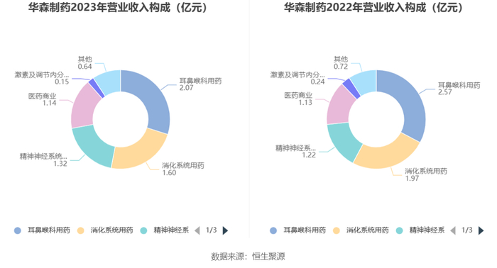 分产品看,耳鼻喉科用药、消化系统用药、精神神经系统用药2023年毛利率分别为80.67%、51.61%、57.28%。
