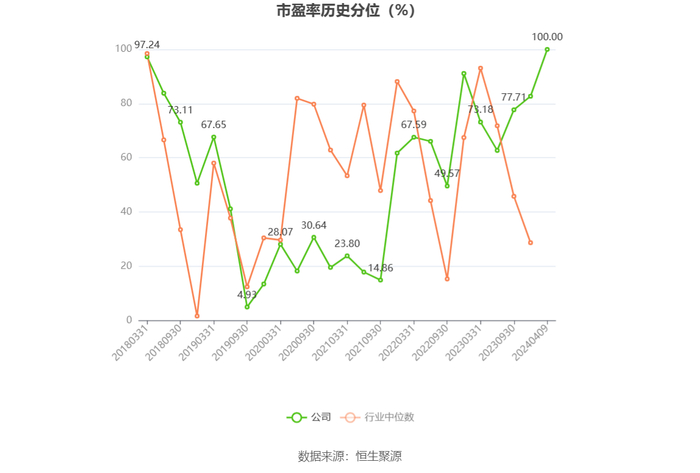 市盈率为负时,不显示当期分位数,会导致折线图中断。